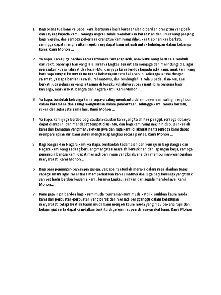 Melalui doa dan ujud misa ini, umat katolik yang masih berziarah di dunia ini meyakini semua orang yang sudah meninggal bisa mendapat kemurahan hati. Tidak boleh kita hanya berhenti di sini saja. Teks misa arwah 1000 hari. Doa pribadi dan bersama (komuniter), doa liturgi dan devosi, doa dari buku dan doa spontan, doa obyektif dan doa subyektif, doa bapa kami, salam maria, novena tiga salam maria dll. Doa umat katolik apk is a personalization apps on android.